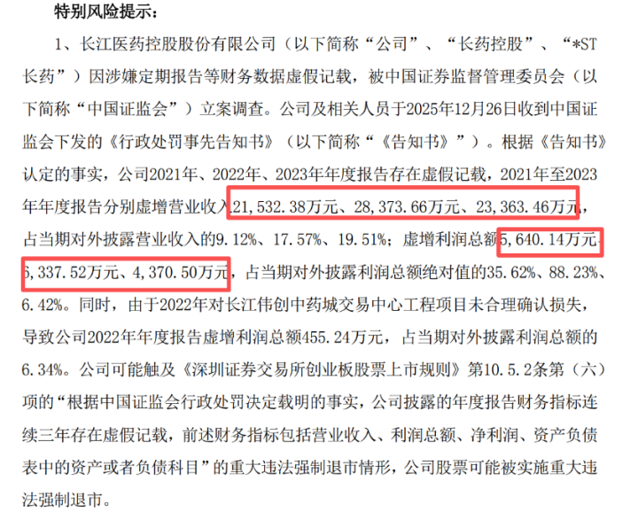 上证报中国证券网讯(记者韩远飞)12月26日晚,*ST长药发布公告。公司因涉嫌定期报告等财务数据虚假记载,被证监会立案调查高杠杆股票配资平台,公司于2025年12月26日收到中国证监会下发的《行政处罚事先告知书》。